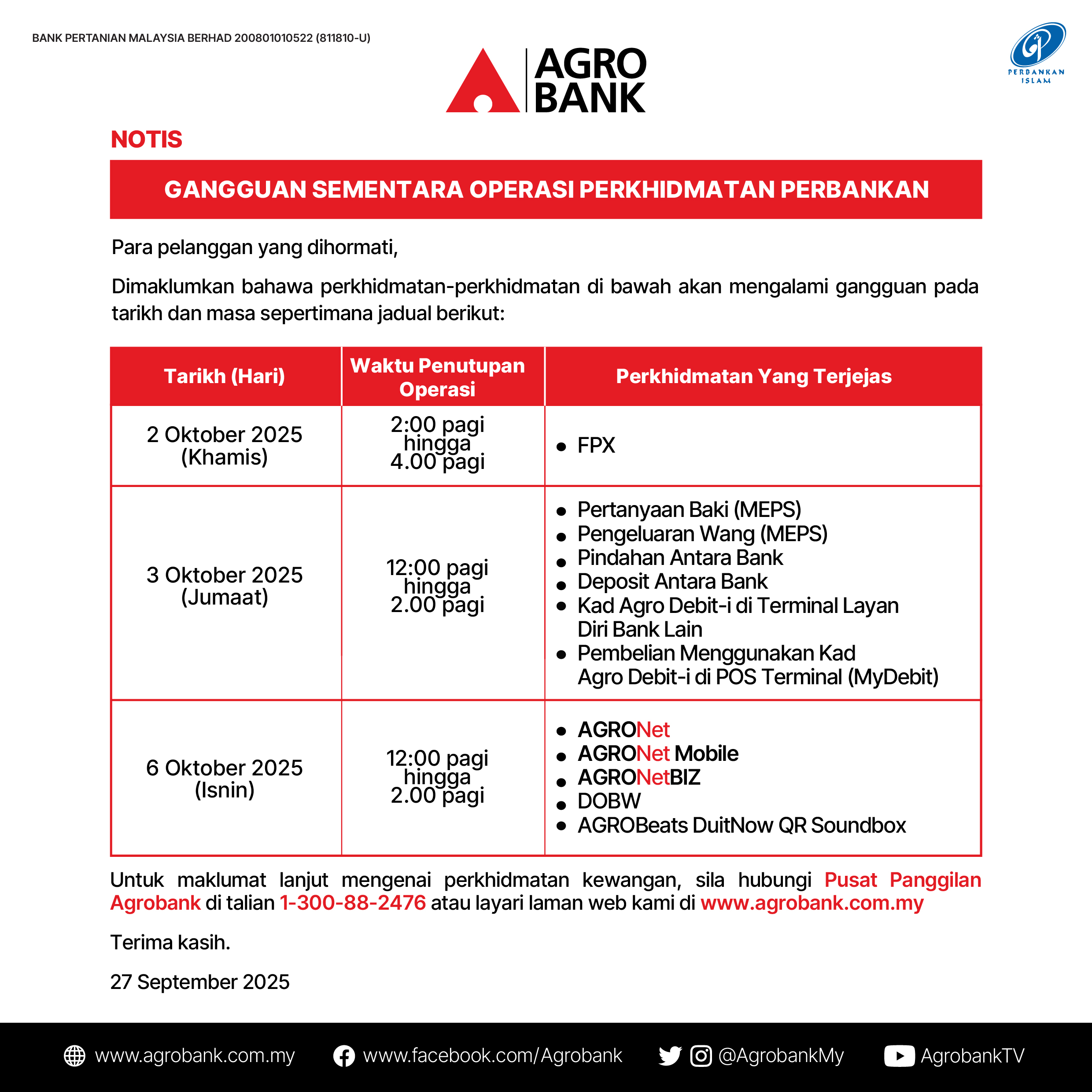 Notis Gangguan Sementara Operasi Perkhidmatan Perbankan
