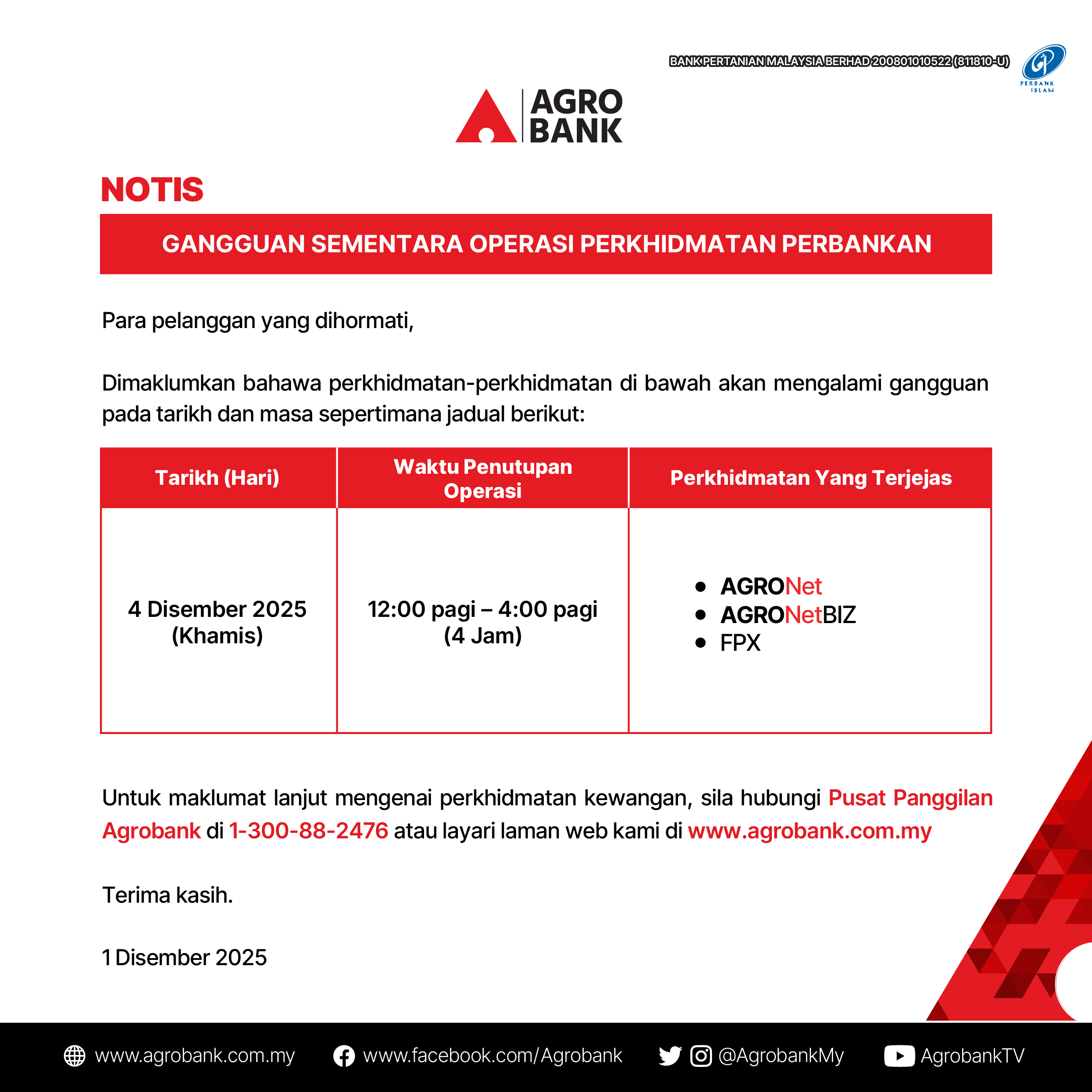 Notis Gangguan Sementara Operasi Perkhidmatan Perbankan